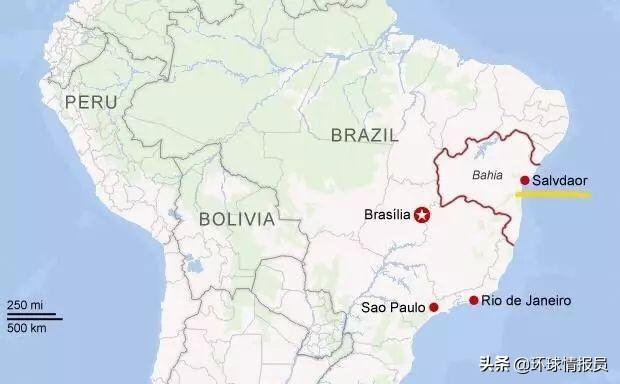 ▲畫(huà)線處為薩爾瓦多,它是新世界的第一個(gè)奴隸市場(chǎng),是非洲奴隸貿(mào)易的主要中心之一。