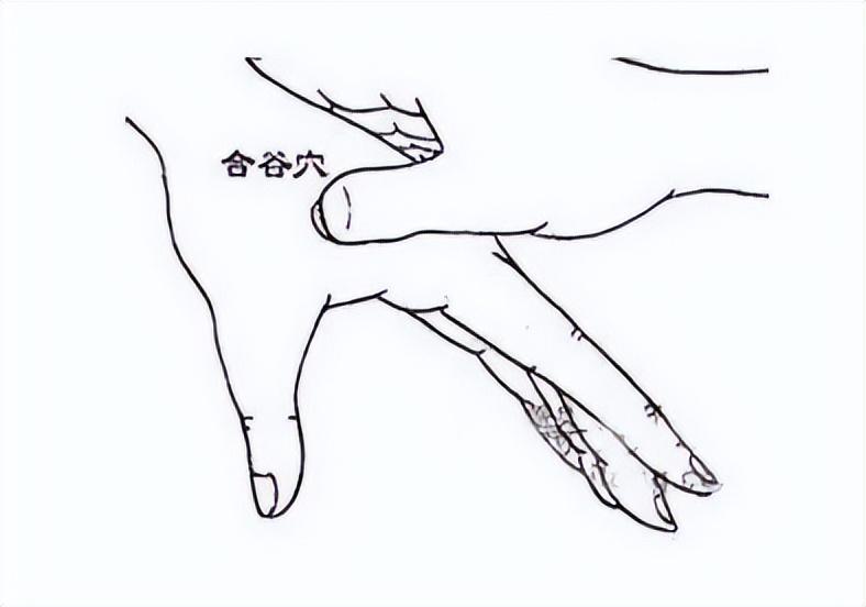 拇指指腹置于合谷穴(位于拇指和食指合攏后隆起肌肉高處),向第二掌骨骨膜緩緩用力,以出現(xiàn)酸脹感為度。