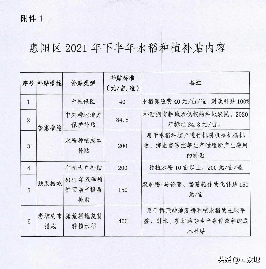 廣東惠州惠陽(yáng)區(qū),2021年農(nóng)戶下半年種植水稻每畝少可獲補(bǔ)貼200元,在疊加各項(xiàng)補(bǔ)貼后每畝高可獎(jiǎng)補(bǔ)800元,補(bǔ)貼流程是申報(bào)核實(shí)實(shí)際種植面積,然后通過(guò)“一卡通”發(fā)放。