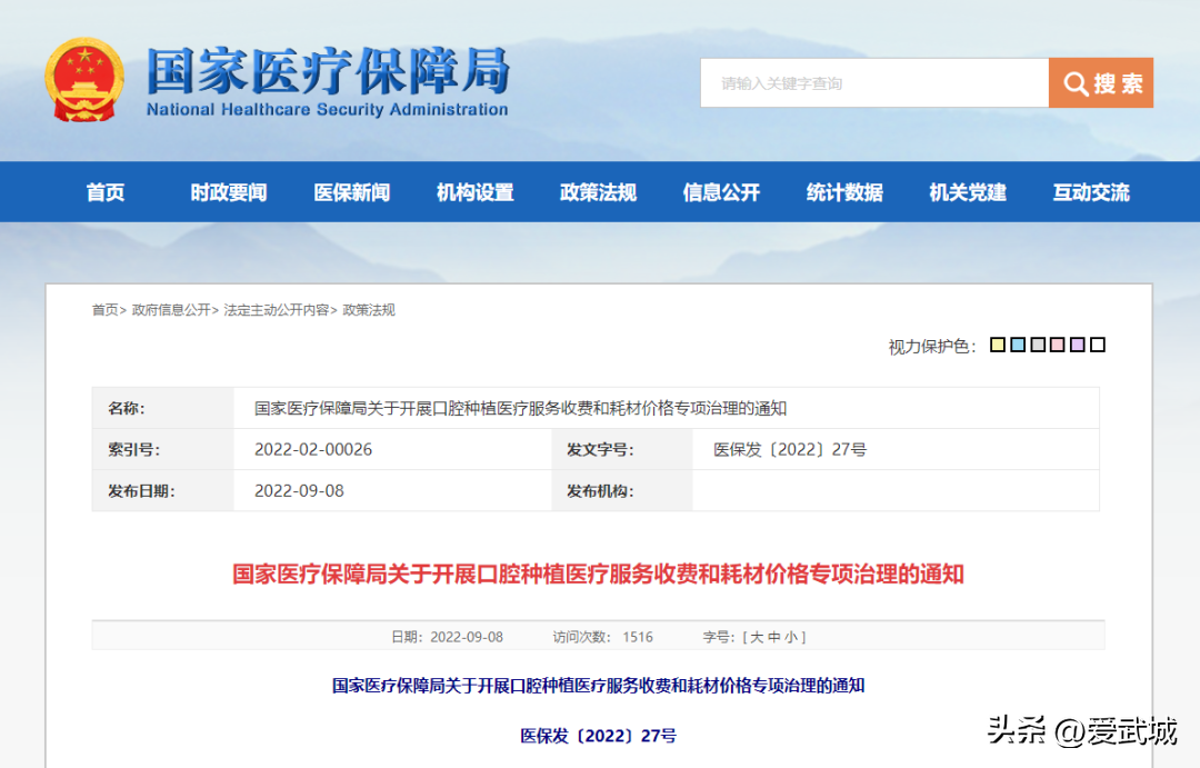 醫(yī)療保障局關(guān)于開展口腔種植醫(yī)療服務(wù)收費(fèi)和耗材價(jià)格專項(xiàng)治理的通知