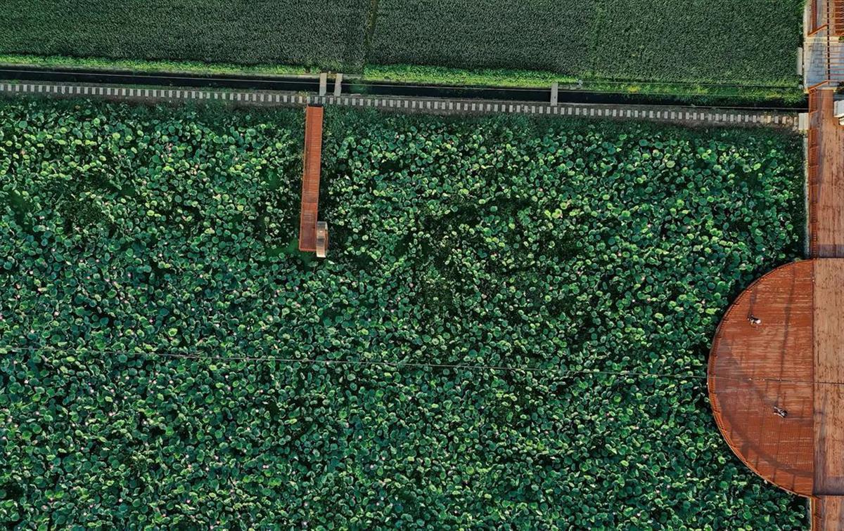 “江南可采蓮,蓮葉何田田”,在張湖村千畝荷塘里,一步一景,處處成畫,荷花與這里的山水風(fēng)景、鄉(xiāng)村民居相互映襯,美不勝收。