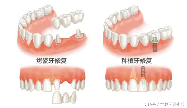 種植牙與烤瓷牙的區(qū)別:
