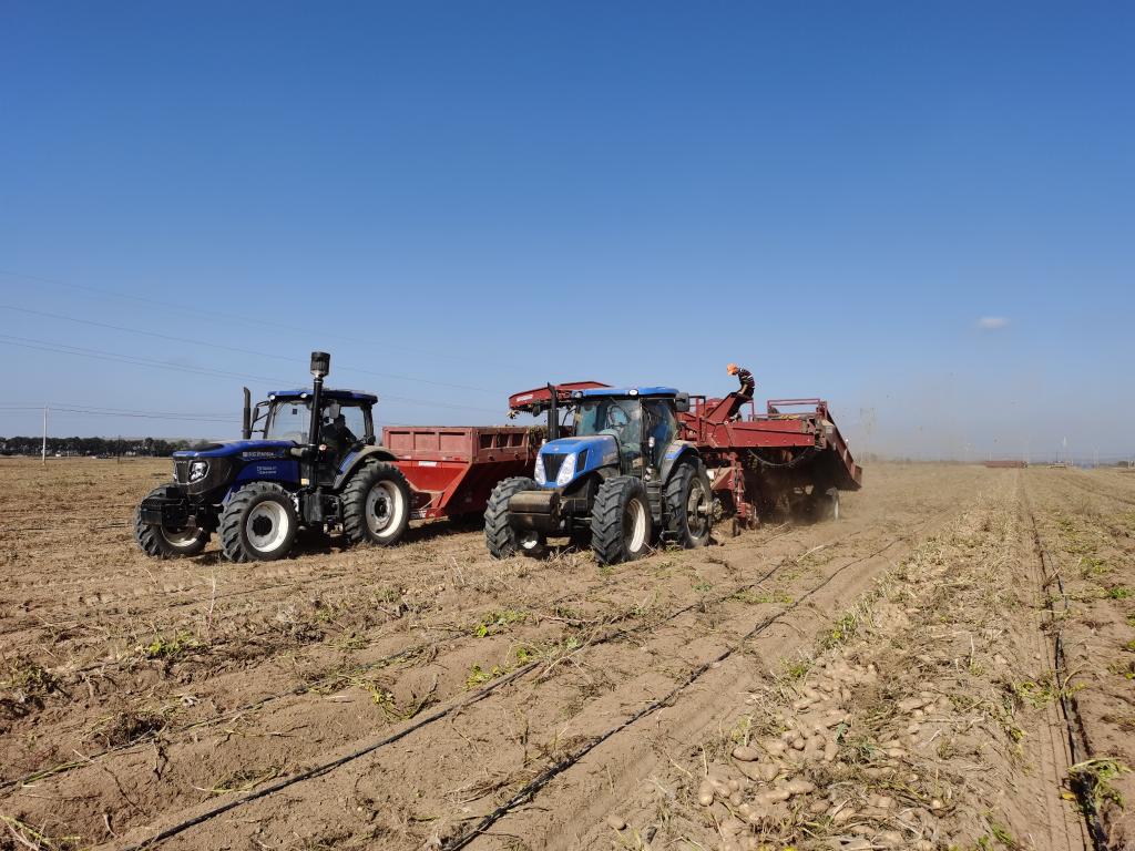 五寨縣現(xiàn)代加工型馬鈴薯種植示范基地里,農(nóng)民正在收獲馬鈴薯。(受訪(fǎng)者供圖)