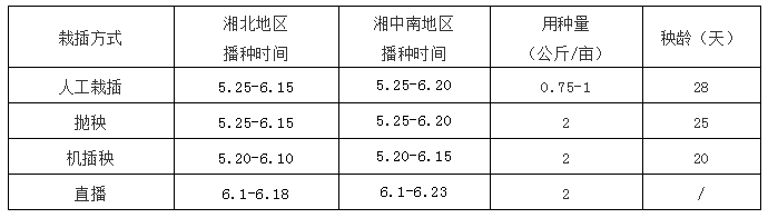 隆晶優(yōu)蒂占全生育期119天,作一季晚稻早播種期在6月上旬,過(guò)早播種將增大抽穗揚(yáng)花期遇高溫天氣的機(jī)率,容易造成減產(chǎn)與米質(zhì)下降;過(guò)遲播種,若后期光溫不足將影響產(chǎn)量,若寒露風(fēng)早來(lái)將影響齊穗。