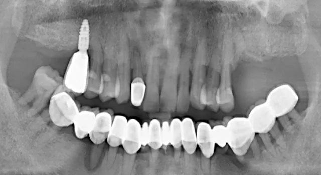 手術(shù)失敗的種植牙,使用壽命僅僅只有2個(gè)月(種植窩空虛,頰側(cè)嵴頂骨缺損)