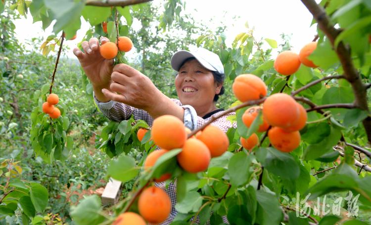 2020年6月1日,河北省曲陽(yáng)縣孫家莊村西旦溝現(xiàn)代農(nóng)業(yè)園區(qū)果園里,種植戶在采摘鮮杏。 河北日?qǐng)?bào)記者杜柏樺攝影報(bào)道