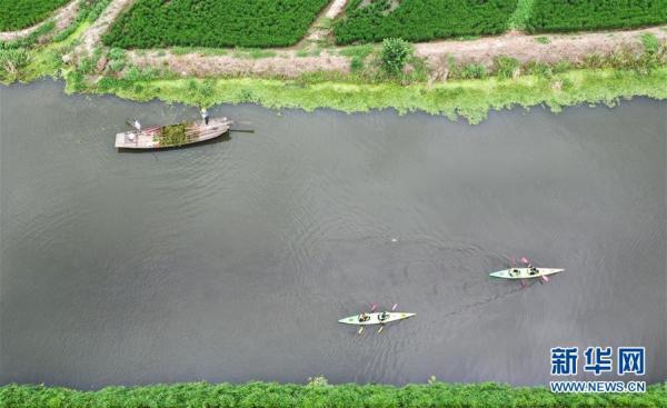 8月8日,皮劃艇行進(jìn)在張浦鎮(zhèn)尚明甸村的河道中(無人機照片)。 近年來,江蘇省昆山市張浦鎮(zhèn)推進(jìn)以生態(tài)農(nóng)業(yè)、綠色農(nóng)業(yè)、旅游農(nóng)業(yè)為核心的鄉(xiāng)村建設(shè),經(jīng)濟持續(xù)高發(fā)展,2019年農(nóng)民人均純收入達(dá)46695元,農(nóng)村面貌日益改良。 新華社記者楊磊攝