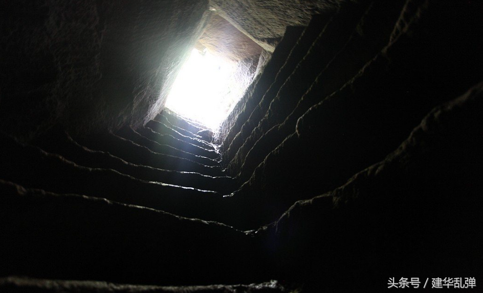 天生洞比天仙洞神奇,在它的洞頂,有人工構(gòu)造留下的空間。距天生洞洞口上方的洞頂,向上開鑿了一個方形孔洞。沿著后來修建的石梯向上攀登,就能進入上面另一個人工開鑿的空間。由下向上的洞口呈“斗”狀,“斗”的下口約1x1米大,上口的約2×2米,“斗”深約1米。上方“斗壁”還開有數(shù)個同水平的孔洞,估計應(yīng)該是用來封鎖洞口的裝置。通過這個方斗就到了第二層,就像從一樓到了二樓一般。二層的空間很寬敞,約有30平方米。第二層外側(cè),就是外面看見崖壁上的幾個孔洞。除大的一個孔洞外,其余小孔洞均外小內(nèi)大。由這些孔洞向外望去,外面景況一覽無余。洞內(nèi)左側(cè)有一同治年間的“天生洞記”,已經(jīng)有些模糊,記載了洞的淵源。二層洞內(nèi)還有一向上通往山頂?shù)亩纯?,可以由此攀爬到山頂上去?/p>