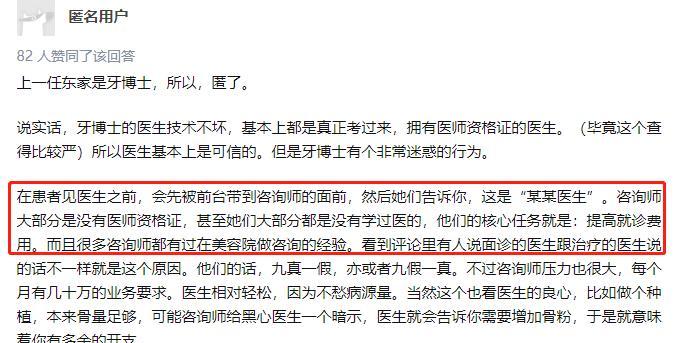 另有自稱為牙博士前員工的網(wǎng)友表示牙博士存在將沒(méi)有醫(yī)師資格證的包裝成“醫(yī)生”以提高就診費(fèi)用的行為。
