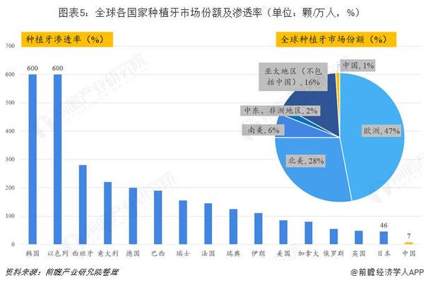 從市場份額看,歐洲占據(jù)了47%的份額,北美28%排名第二,而中國只占約1%。憑借中國龐大的人口基數(shù),中國擁有成為未來大的口腔種植市場的潛力。