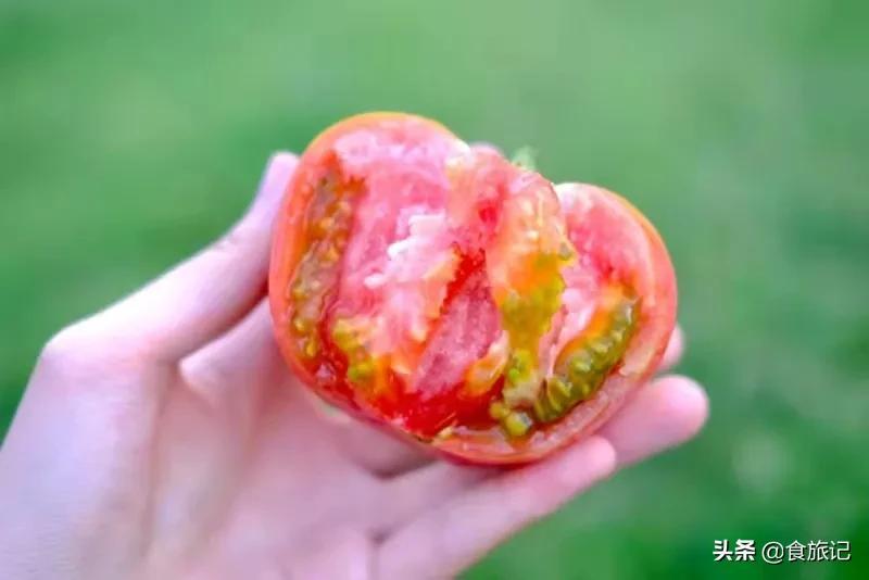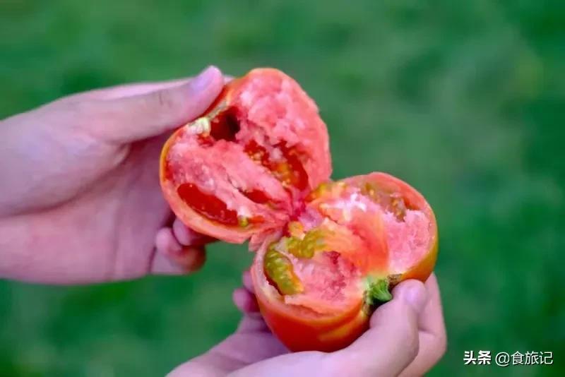 不同于現(xiàn)在那些硬邦邦的無汁果,兒時的西紅柿個個掰開都是沙瓤口感,細膩沙綿,一口不知道多軟乎!