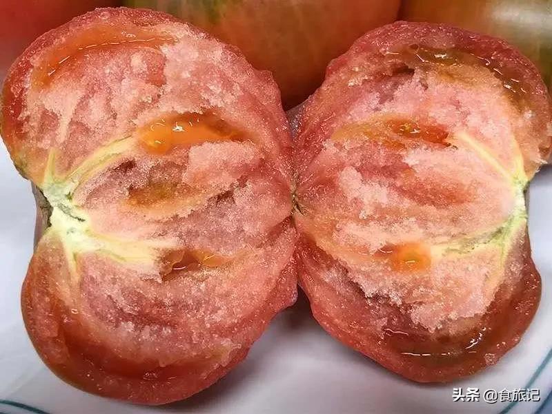 咬上一口,鮮甜汁水飚出,厚實的沙粒感在唇齒間徘徊。粉粉綿綿的,像是把西紅柿給含化了一般。