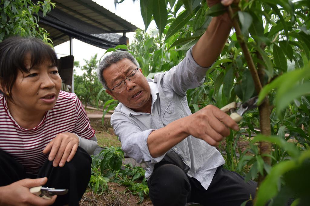 近年來,周令堂還組建了“夏滿蜜桃”科技服務(wù)團(tuán)隊(duì),建立“科技創(chuàng)新團(tuán)隊(duì)+基層農(nóng)技服務(wù)體系+新型農(nóng)業(yè)經(jīng)營(yíng)主體”的科技服務(wù)模式,帶領(lǐng)科技人員走村入戶,到田邊地頭一對(duì)一向種植戶講解良種良法,幫助種植戶掌握技術(shù)要領(lǐng)。