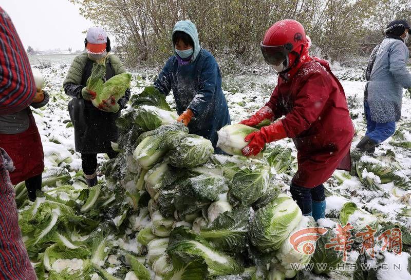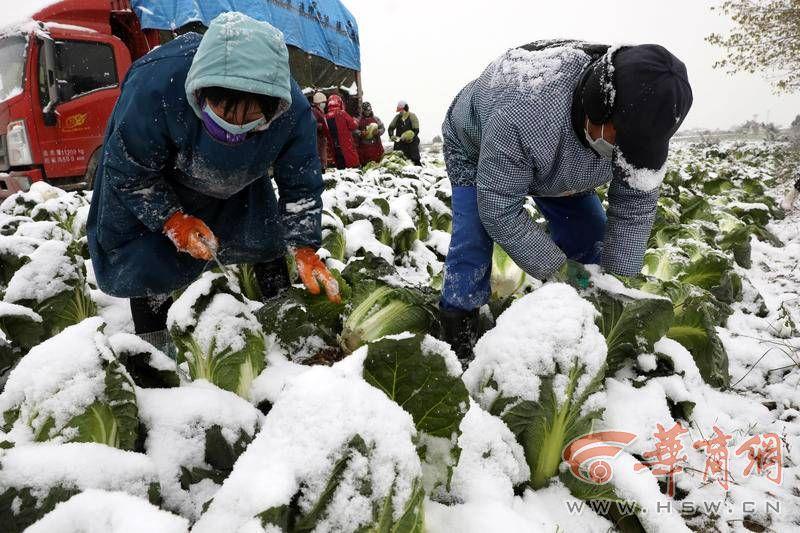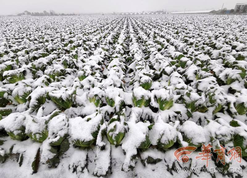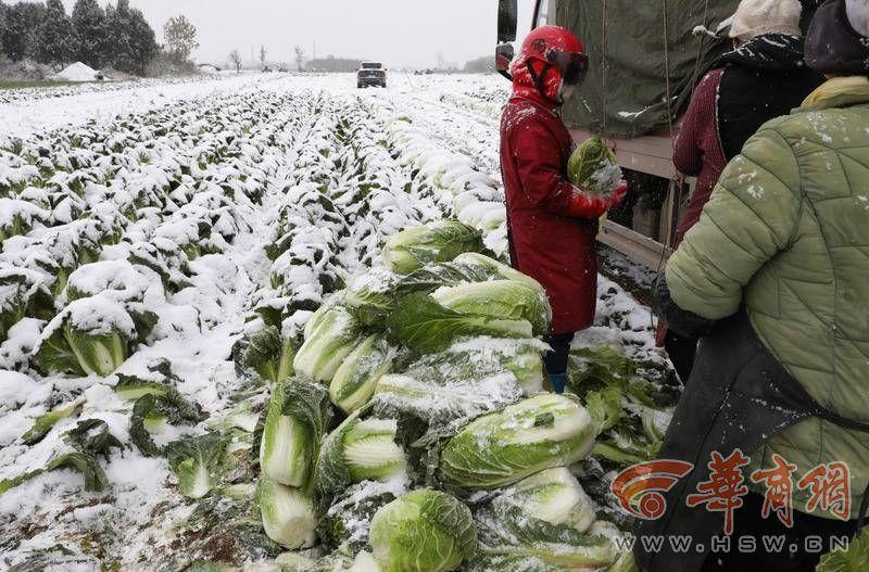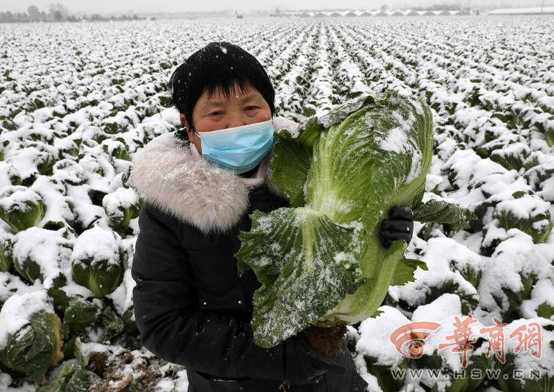 11月30日,天空下著鵝毛大雪,華商報記者來到西安市鄠邑區(qū)渭豐街辦渭北村的地頭,看到廣闊的菜地上,綠油油的白菜上覆蓋了一層潔白的雪?!斑@是白菜,還有蘿卜、小青菜等,渭豐街辦、澇店街辦兩個街辦現(xiàn)在大概有5000畝蔬菜需要銷路?!编傄貐^(qū)瓜菜協(xié)會會長楊敏說著,就從菜地拔起一棵大白菜。只見白菜青翠新鮮,個頭很大。
