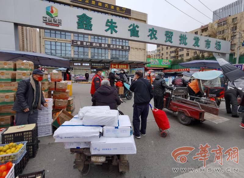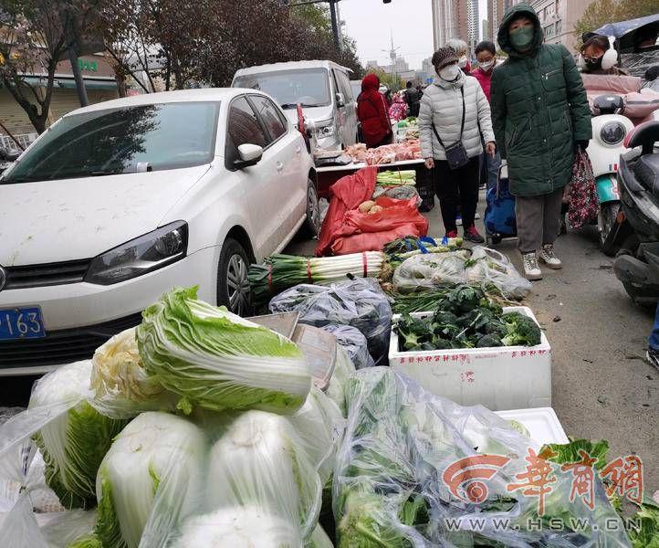 11月30日上午,華商報記者來到西安市雁塔區(qū)的鑫朱雀農(nóng)貿(mào)批發(fā)市場。因疫情防控,批發(fā)市場暫時關(guān)閉,蔬菜攤位搬至雙橋一巷的道路兩邊。
