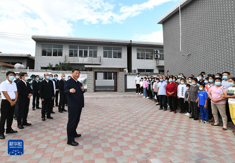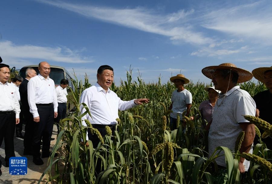 2021年9月13日至14日,在陜西省榆林市考察。圖為13日下午,在米脂縣銀州街道高西溝村臨時(shí)下車(chē),察看糧食作物長(zhǎng)勢(shì),同正在田間勞作的老鄉(xiāng)拉家常。新華社記者 李學(xué)仁 攝
