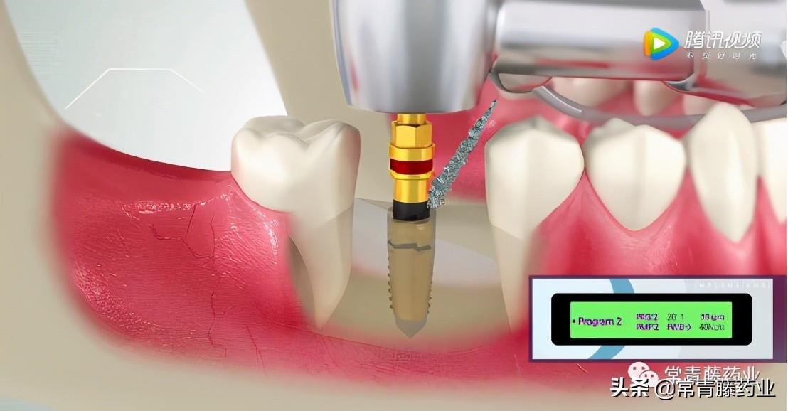 3、牙齒鉆孔。因為種植窩洞大約3-5毫米,在鉆孔時會逐步換鉆,直到鉆成跟原本設(shè)計的種植體直徑差不多就可以了。