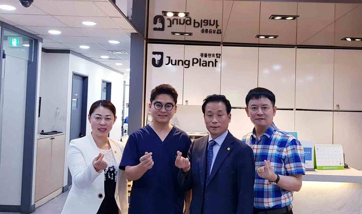 左起為麥粒國際多文化總聯(lián)合會(huì)總會(huì)長邊愛蓮、仁川正種植牙齒科集團(tuán)醫(yī)院代表院長文現(xiàn)圭、博愛&分享運(yùn)動(dòng)本部總裁馬弘培、韓國新華報(bào)社社長曹明權(quán)等,共同在仁川正種植牙齒科集團(tuán)醫(yī)院合影留念。