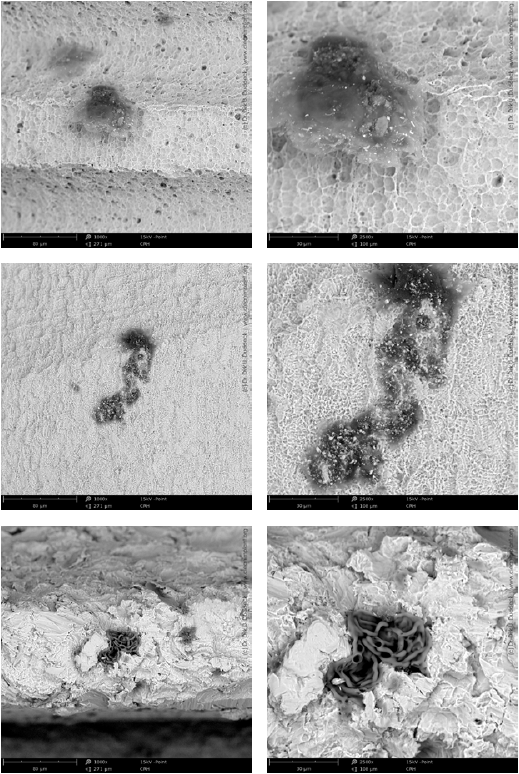 飛納電鏡拍攝的無菌植入物上的有機(jī)污染 SEM 圖像