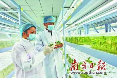基地技術(shù)人員檢查紅薯苗生長(zhǎng)情況。李波 攝