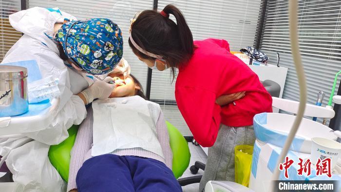 圖為醫(yī)生為小朋友進行牙齒檢查。 張林虎 攝