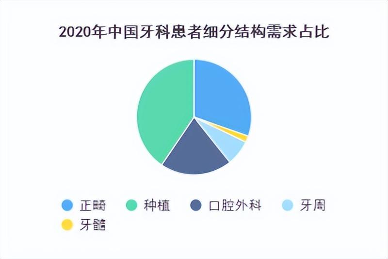 口腔種植和正畸在口腔醫(yī)療領(lǐng)域都占有極其重要的地位,二者所占市場規(guī)模的份額分別在40%和30%左右,成為醫(yī)療口腔領(lǐng)域的“兩大黃金賽道”。