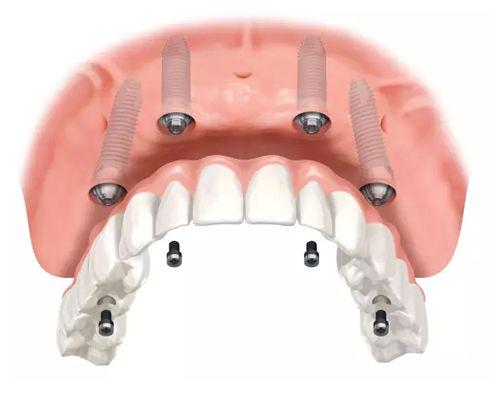 種植牙適用于各種類型的牙齒缺失情況,包括單顆牙缺失、多顆牙缺失、半口牙缺失以及全口牙缺失等。其中針對半口牙缺失的修復(fù),主要是在缺牙部位的牙槽骨內(nèi)植入4-6顆數(shù)量不等的種植體,然后再在種植體上面制作修復(fù)體。