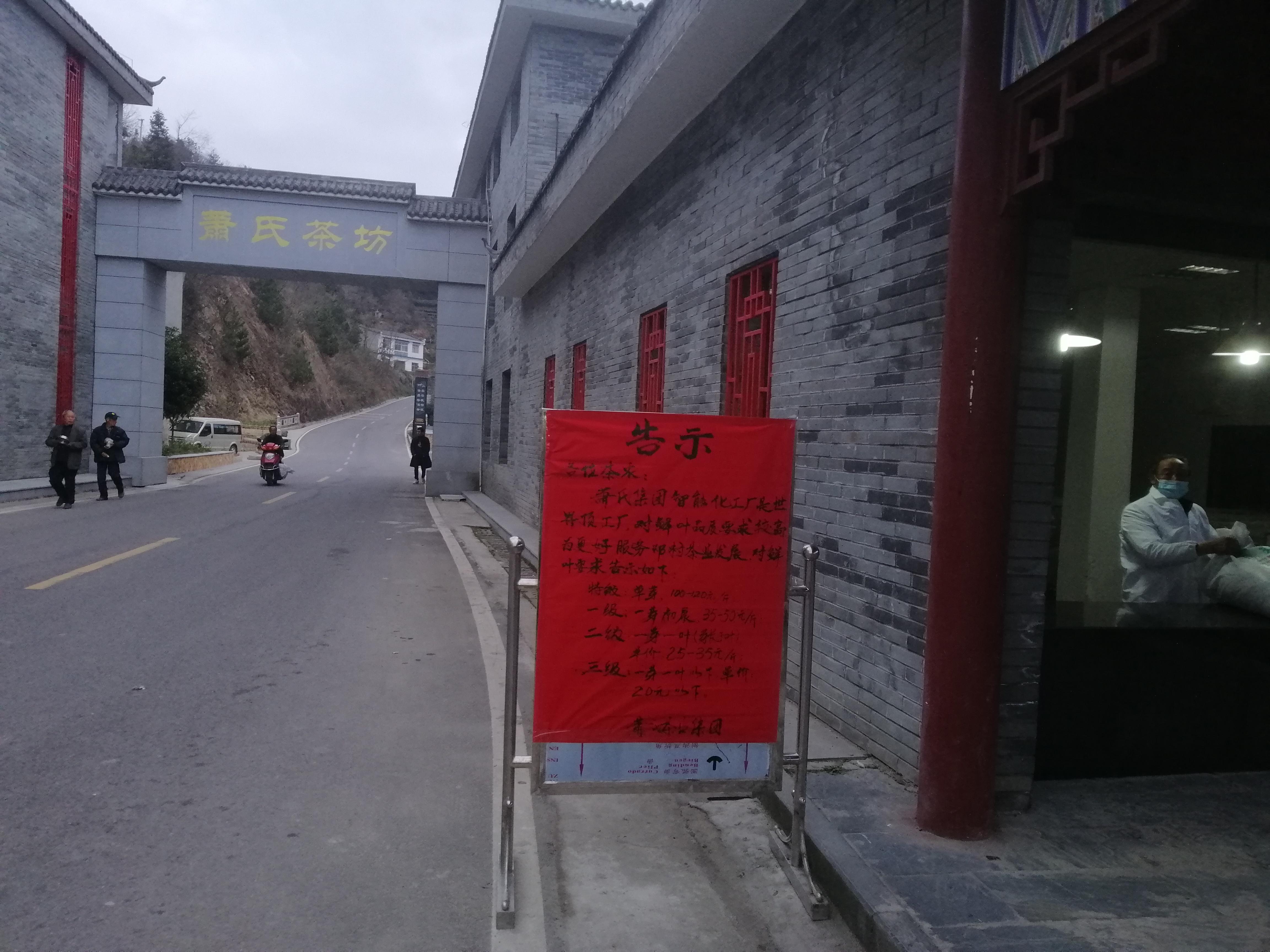 蕭氏“無人工廠”鮮葉收購站等級和價格公示牌