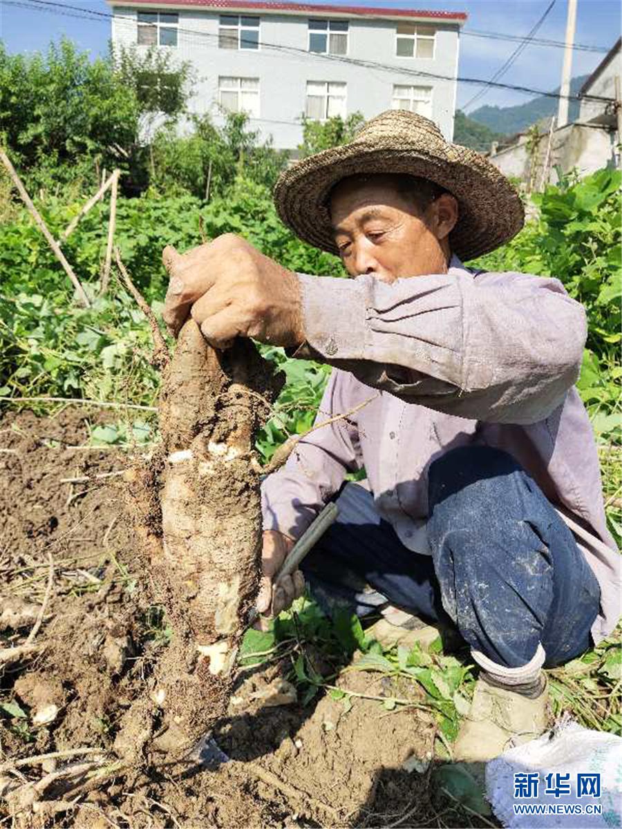 農(nóng)戶在收割葛根 新華網(wǎng)發(fā)
