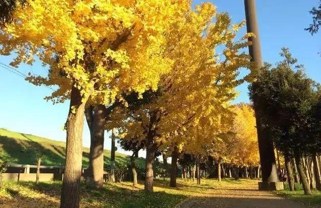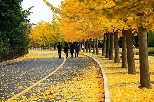 兩側的兩排銀杏樹形成一條"黃金大道"