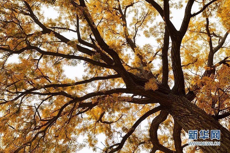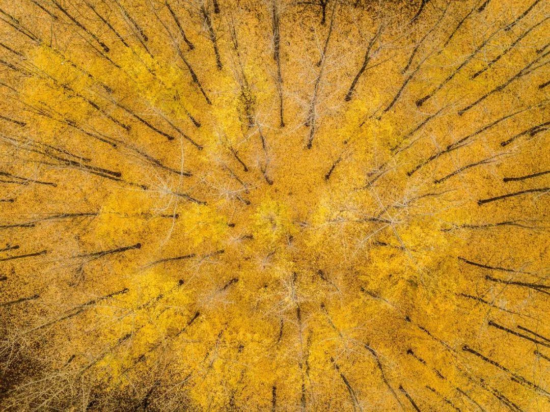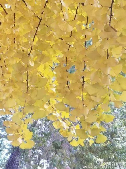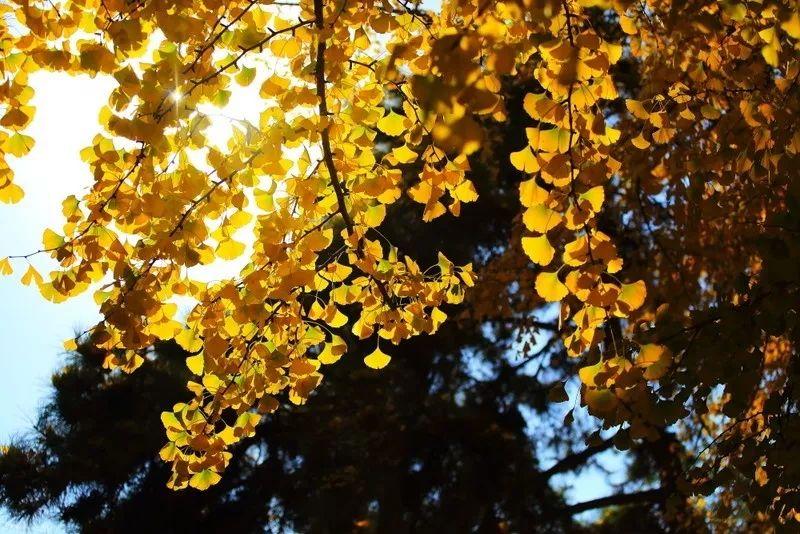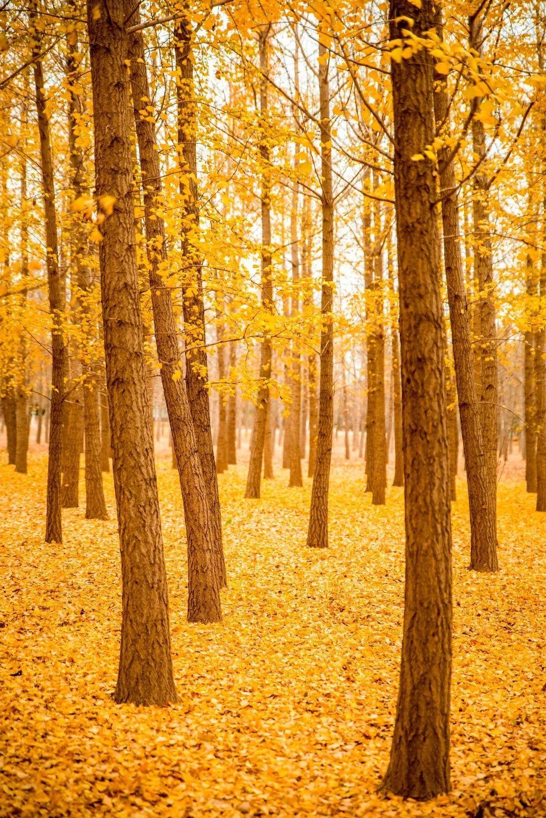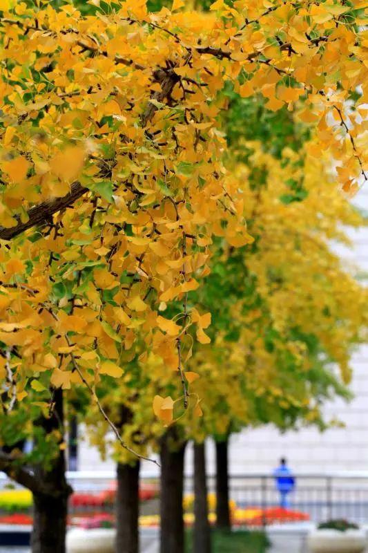 幾百株銀杏樹的樹葉變?yōu)榻瘘S色