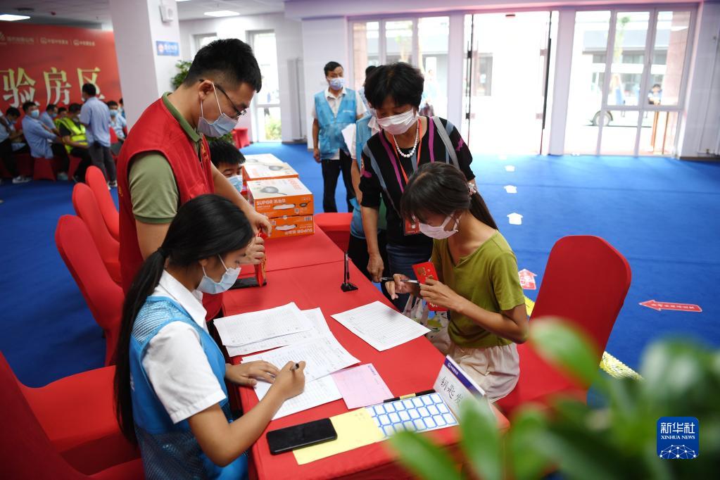 2022年8月26日,回遷居民在雄安新區(qū)雄東片區(qū)A單元安置房交付點(diǎn)領(lǐng)取鑰匙。