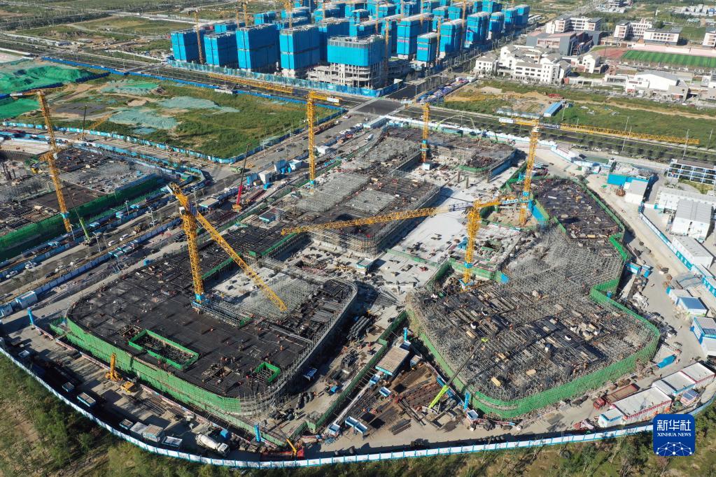 2022年9月7日拍攝的位于雄安新區(qū)啟動區(qū)的中國星網(wǎng)雄安新區(qū)總部大樓建設(shè)施工現(xiàn)場(無人機(jī)照片)。