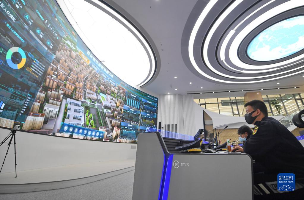 2022年3月29日,工作人員在雄安新區(qū)容東城市運(yùn)營管理中心監(jiān)管平臺工作。