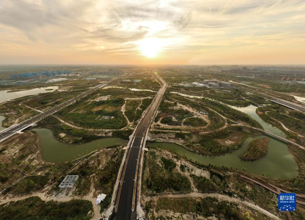 2022年9月8日拍攝的雄安新區(qū)容東片區(qū)的清晨(無人機(jī)照片)。