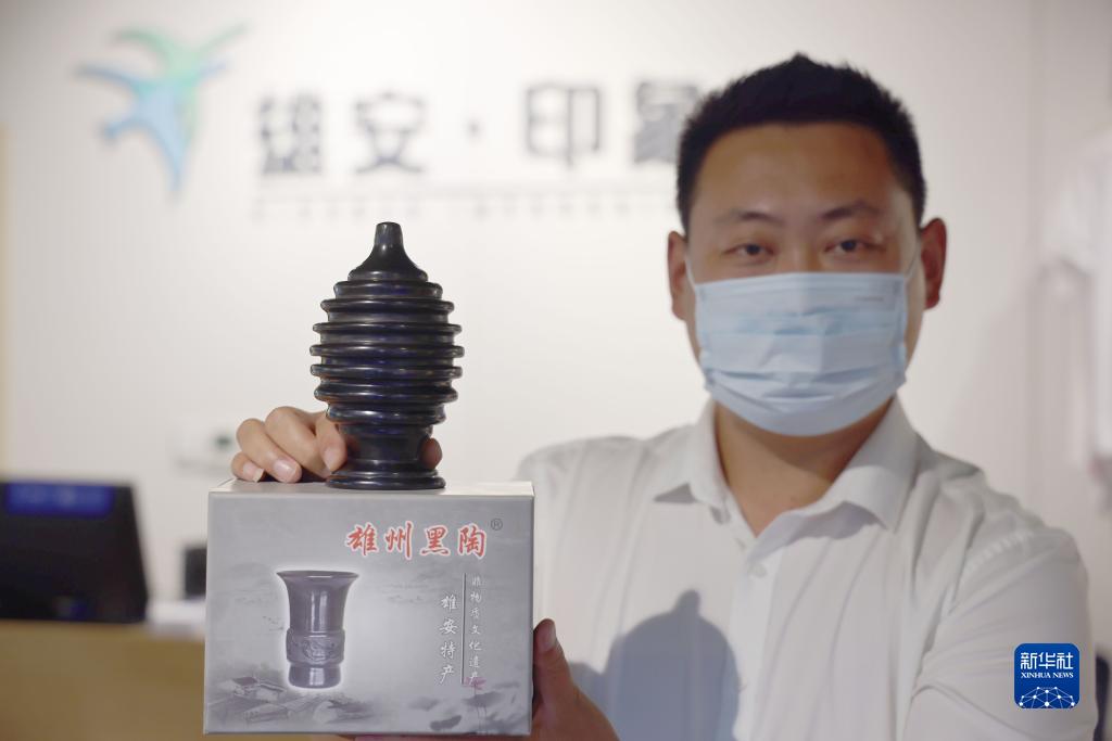 2022年9月6日,工作人員在展示雄安新區(qū)的文創(chuàng)紀(jì)念品。