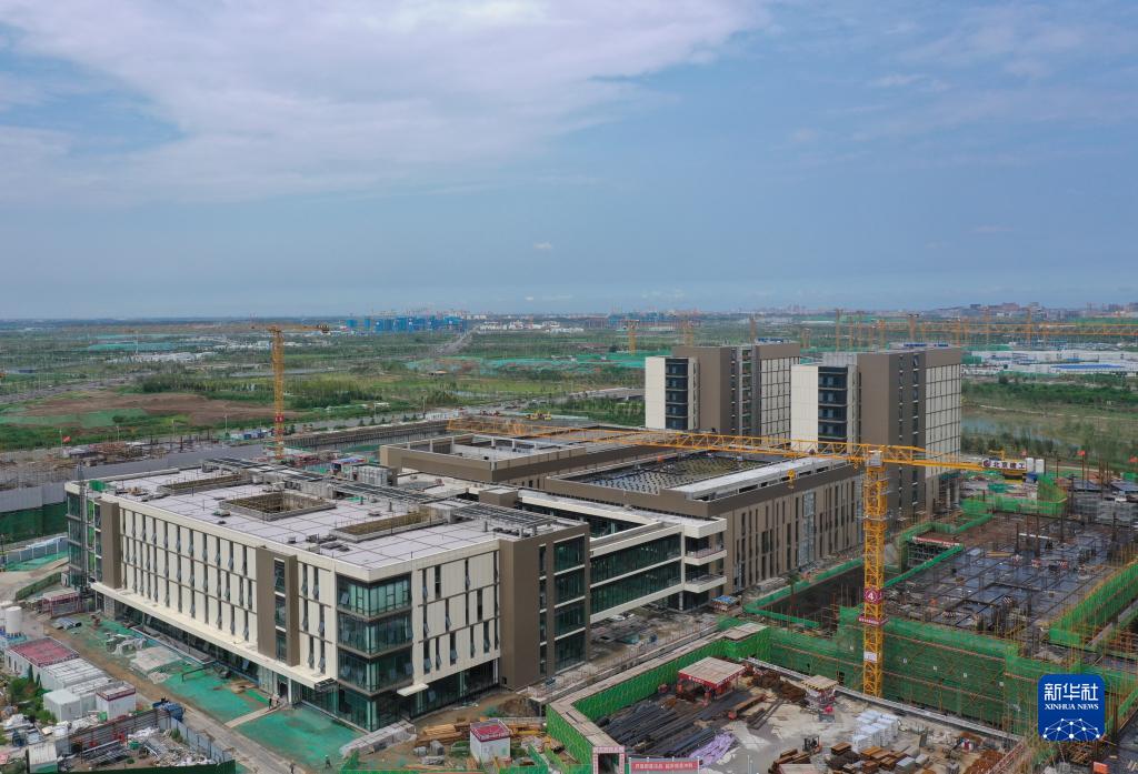 2022年7月29日拍攝的位于雄安新區(qū)啟動區(qū)的雄安新區(qū)宣武醫(yī)院項(xiàng)目建設(shè)現(xiàn)場(無人機(jī)照片)。
