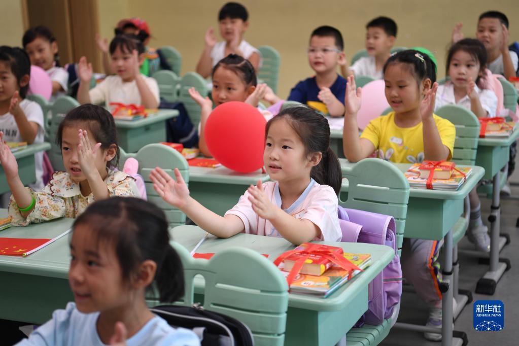 2022年9月1日,河北雄安新區(qū)容東片區(qū)容和悅?cè)菪W(xué)一年級新生在上開學(xué)第一課。