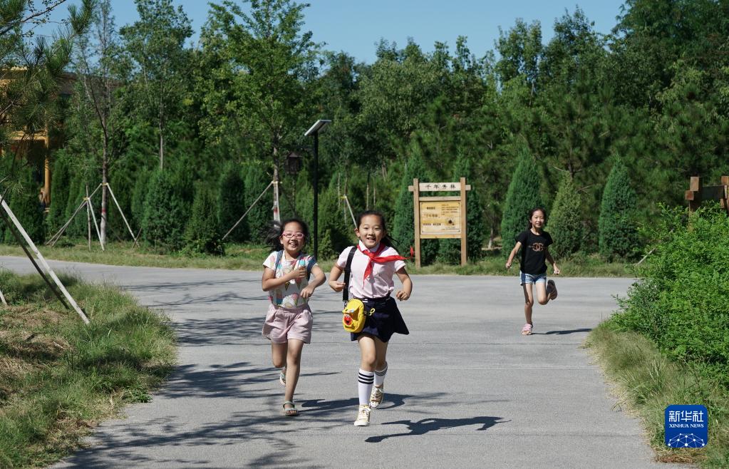 小學(xué)生們在雄安新區(qū)“千年秀林”內(nèi)游玩(2019年8月29日攝)。