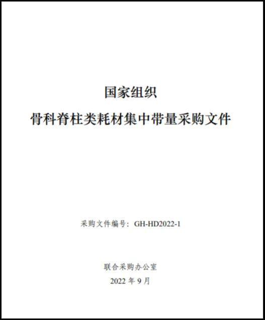 9月7日,組織高值醫(yī)用耗材聯(lián)合采購(gòu)辦公室發(fā)布《組織骨科脊柱類耗材集中帶量采購(gòu)文件》(簡(jiǎn)稱《采購(gòu)文件》),明確將于9月27日由企業(yè)遞交申報(bào)材料,并現(xiàn)場(chǎng)開(kāi)標(biāo)。