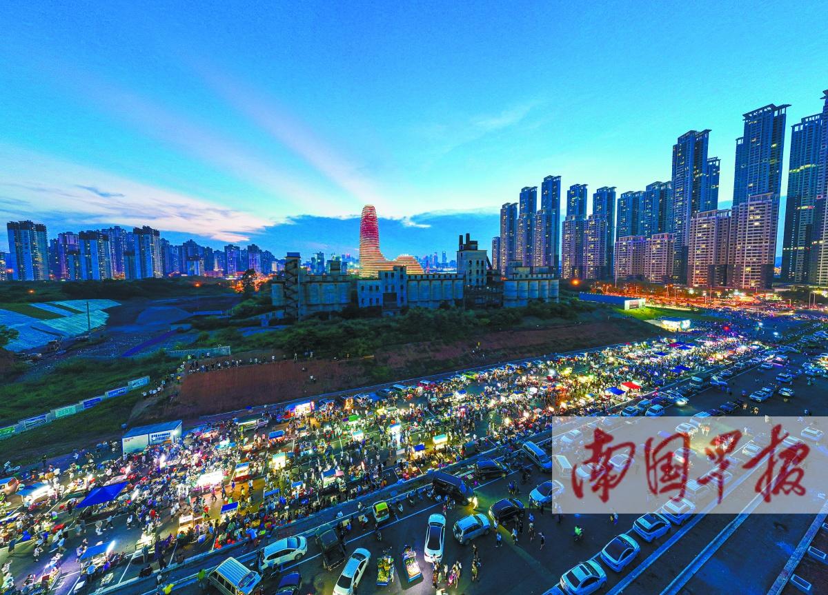 日前,有公告在網(wǎng)上傳開,稱南寧市陽峰路夜市因為施工原因,將于7月27日閉市。這意味著紅極一時的五象新區(qū)網(wǎng)紅夜市,馬上要跟市民說再見了。圖為陽峰路夜市燈火通明,吸引眾多市民前去打卡。 記者 鄒財麟 攝(廣西新聞網(wǎng)-南國早報)