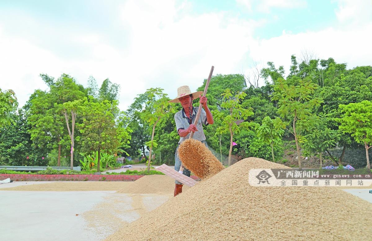 7月21日,在南寧市西鄉(xiāng)塘區(qū)石埠街道老口村那告坡,農(nóng)戶正抓緊收割早稻,糧食顆粒歸倉。朱小明 攝(廣西新聞網(wǎng)-廣西日報)