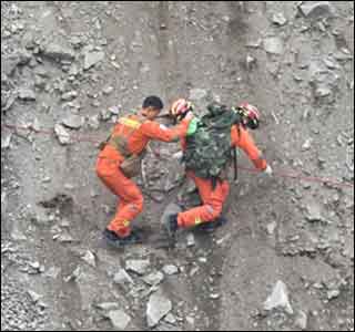 這是發(fā)生在四川甘孜州瀘定縣地震后震撼人心的一幕!冒著滾石掉落的危險,消防員背著不滿3歲的幼童,艱難地攀越垂直滑坡地帶,而腳下就是湍急的水流,讓人看了既感動又揪心。“只有隊員先過,在兩道坎之間用繩索連起來,再組織隊伍慢慢順著繩索,踩出一條路來,后讓8名群眾過去?!彪S著路基逐漸被踩穩(wěn)踩實,8名群眾順著救援人員踩出的“小路”,攀爬通過這段塌方路段?;叵肫鹋逝肋^程,被困群眾杜彥庭抱著兒子一個勁地感謝消防隊員:“如果沒有你們,我們一家真的不知道怎么走過這一段。踩著你們的腳印走到這來,我們真的很心安!”