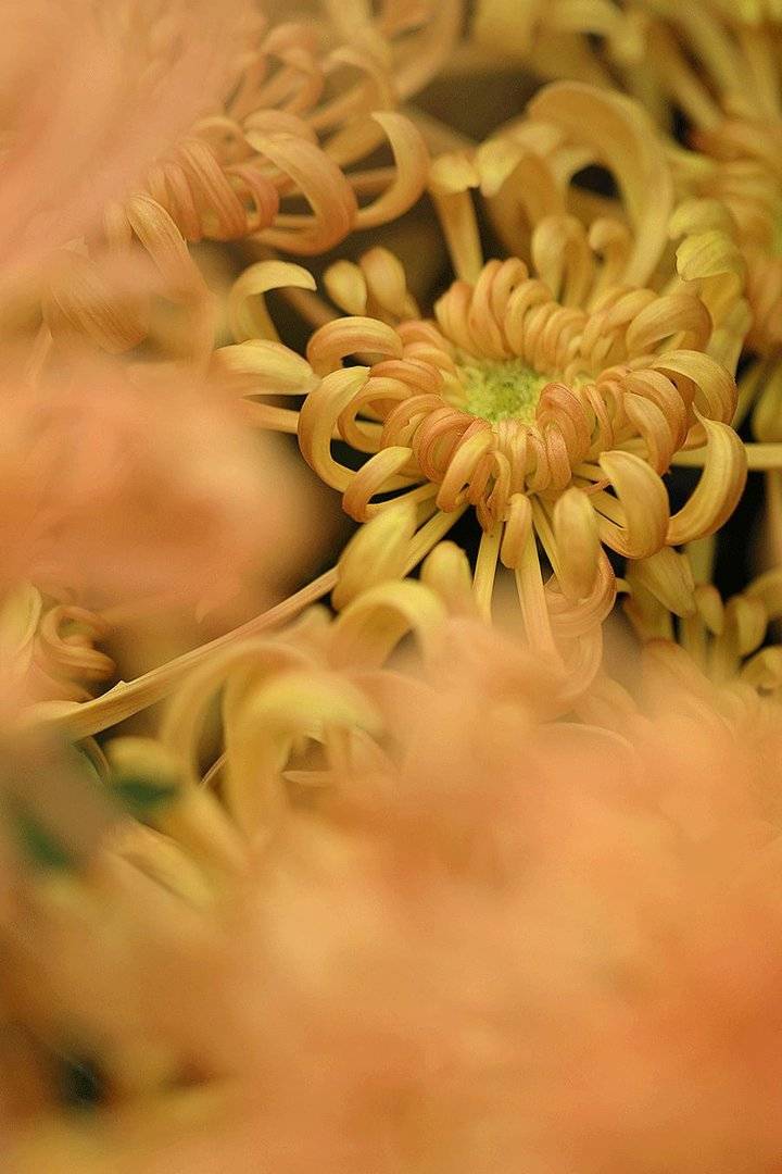 千余年前的秋天,陶潛走出家門,風中帶露,不由得冷得一驚,天地驟然走進了孤獨的日子。轉(zhuǎn)頭一看,菊圃里,黃、橘、紫、粉、嫩綠的菊花怒足了勁,血脈噴張地鮮艷著。