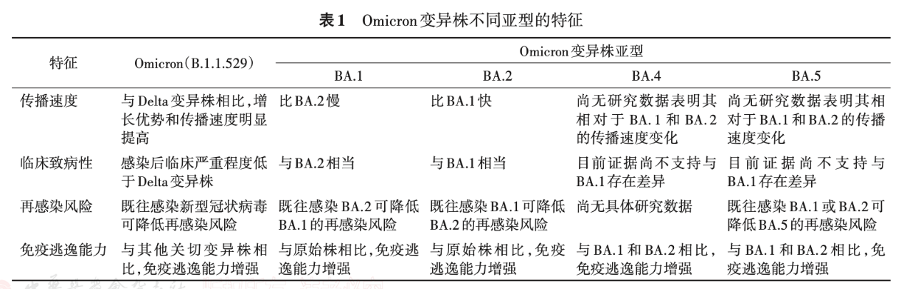 Omicron持續(xù)變異,不斷出現(xiàn)新的亞型,主要包括BA.1,BA.2,BA.3,BA.4和BA.5亞型及其后代譜系。Omicron變異株不同亞型特征的比較見下表。
