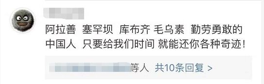 網(wǎng)友觀點:這是和一代代當?shù)厝斯餐Φ慕Y(jié)果,實實在在的沙漠變森林。堅守荒漠植樹造林的人功不可沒!