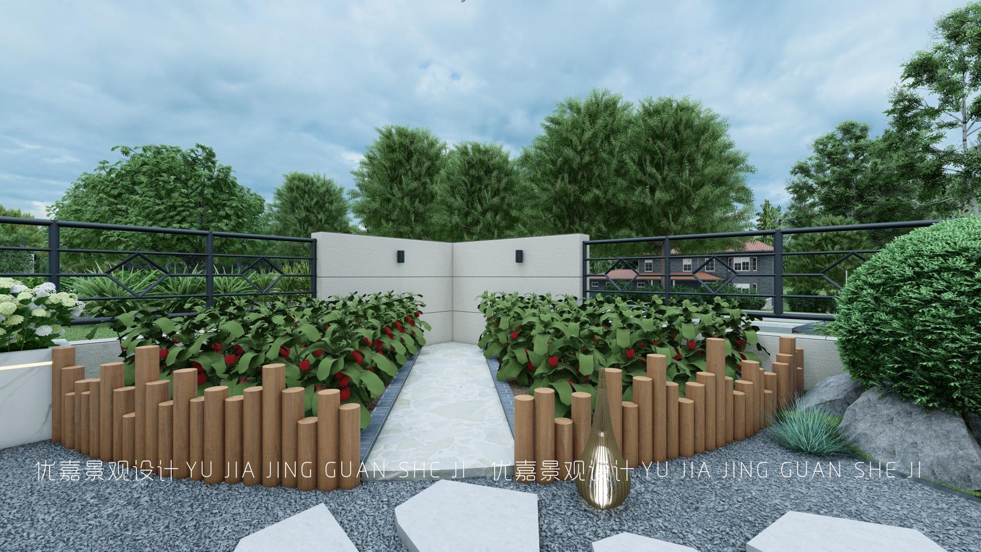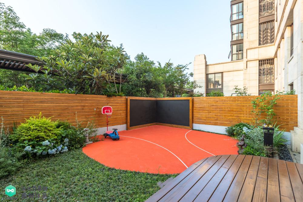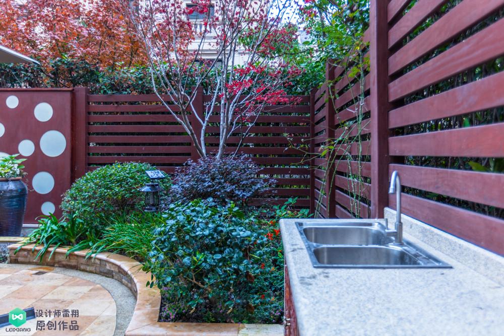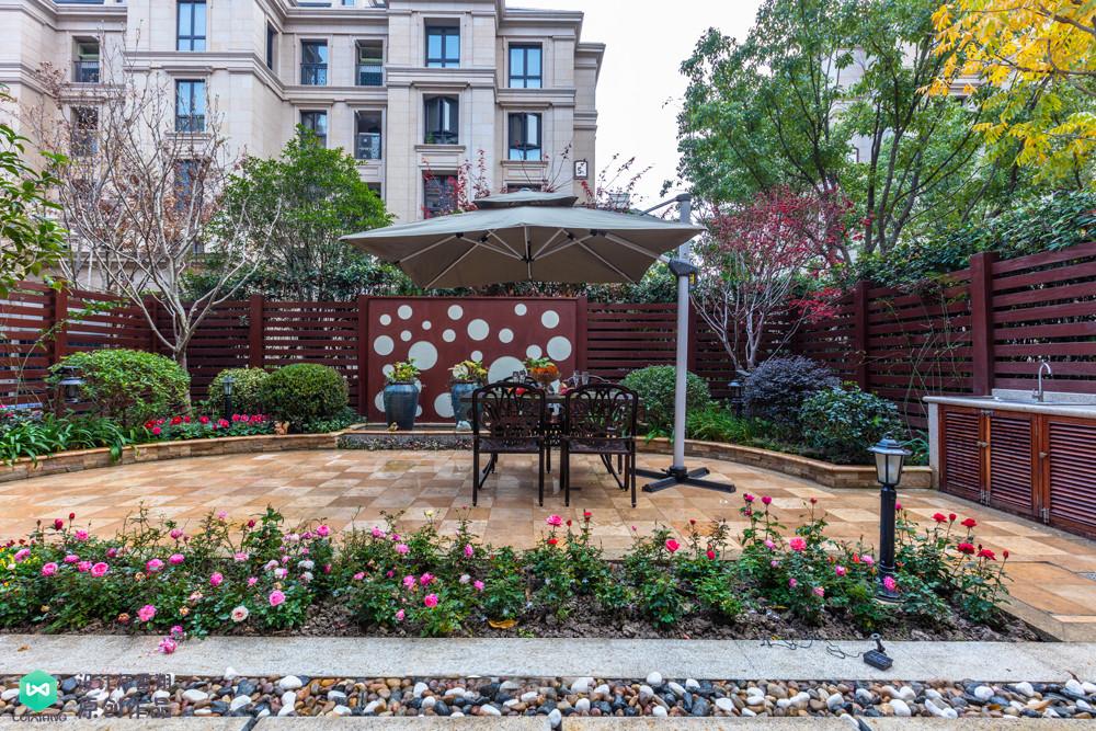 角落為業(yè)主設(shè)計(jì)了菜園,使用高低不同的防腐木矮圍欄進(jìn)行裝飾,增添美觀度。