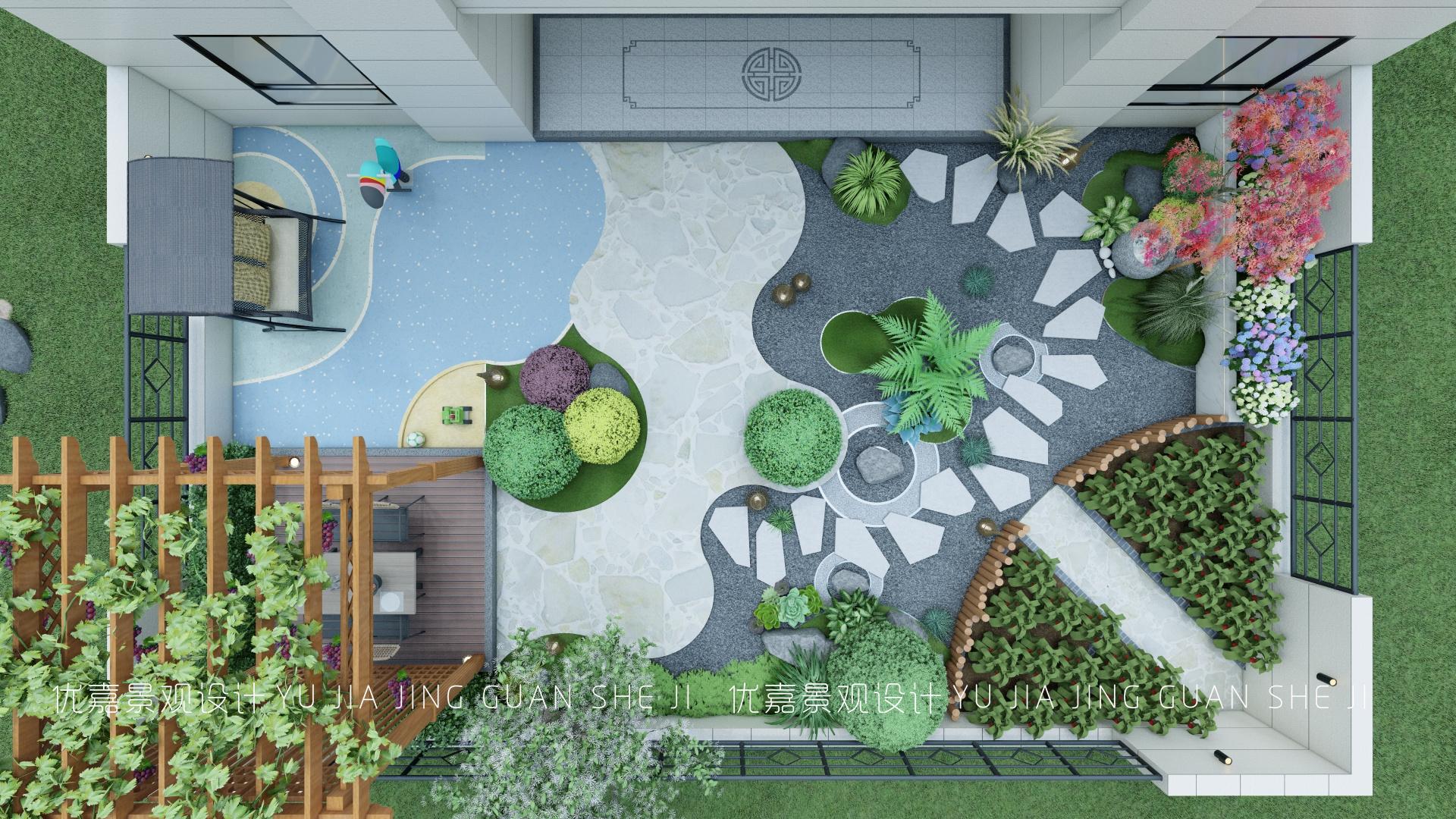 在本庭院中實(shí)現(xiàn)了用餐、洽談、游玩、休閑、種植、觀景等多功能設(shè)計(jì)。