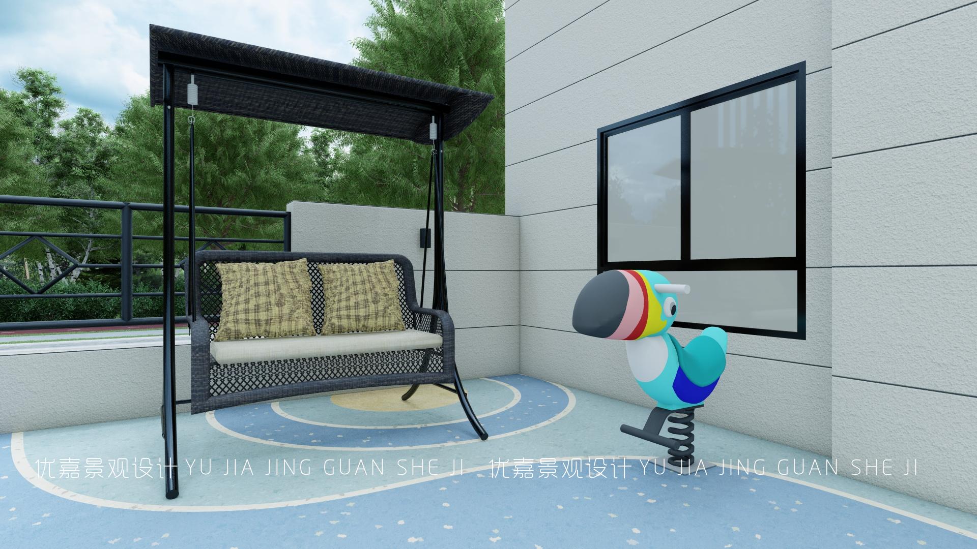 地面設(shè)計(jì)柔軟的塑膠漆鋪裝,不用擔(dān)心孩子摔倒磕傷,豐富的造型和圖案還可以鍛煉孩子的靈動(dòng)和幻想的更多空間,減少孩子的抑郁及負(fù)面情緒。平時(shí)大人在一旁聊天,孩子可以在這里玩耍,玩累了就坐到旁邊的秋千搖椅上歇一歇,幸福感十足。