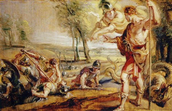 而在神話故事里,牙齒真正成為了被播種、被種植的對象。忒拜傳說中的英雄卡德摩斯殺死毒龍,依照神示將龍牙埋入地下,爾后眾多武士便破土而出。在伊阿宋獲取金羊毛的神話中,國王埃厄忒斯也以龍牙試探英雄:當(dāng)它們被播種到阿瑞斯田野的壟溝中后,同樣長出了巨人武士,而伊阿宋必須將其擊敗。播種龍齒,收獲戰(zhàn)士,這算得上是對牙齒所蘊含神奇?zhèn)チΦ南胂罅恕?/p>